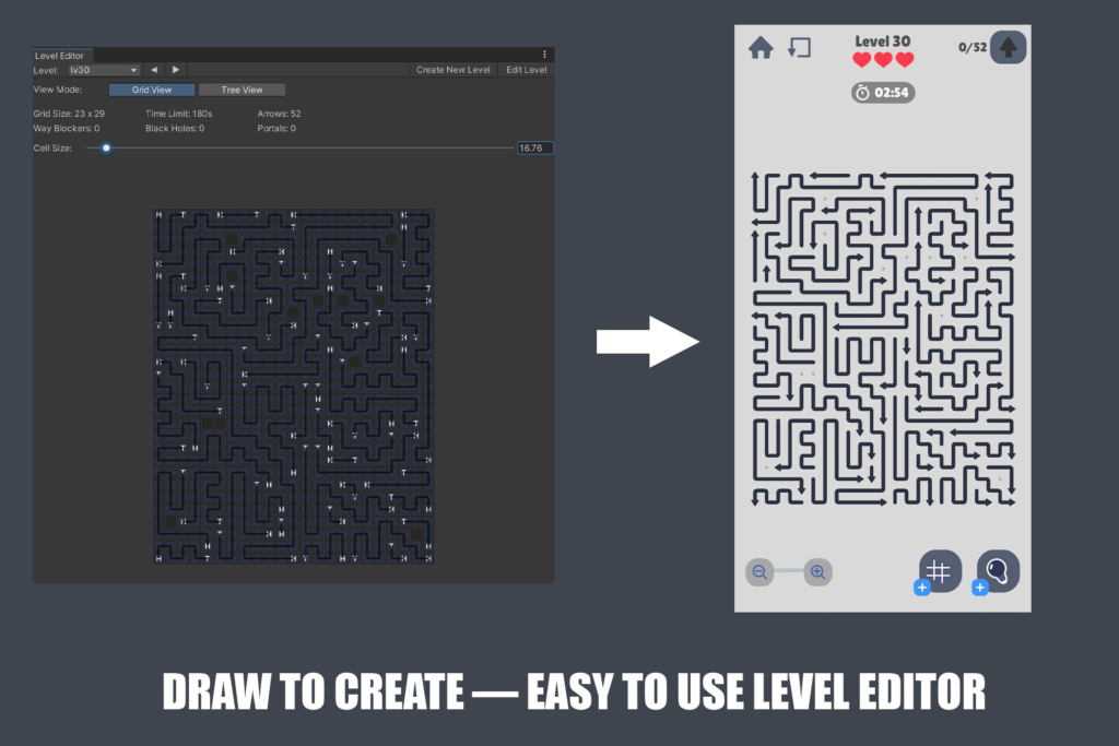 Arrow Out – 1000 Levels And Level Editor Unity includes 1000 professionally designed levels with increasing difficulty to keep players engaged and improve retention.